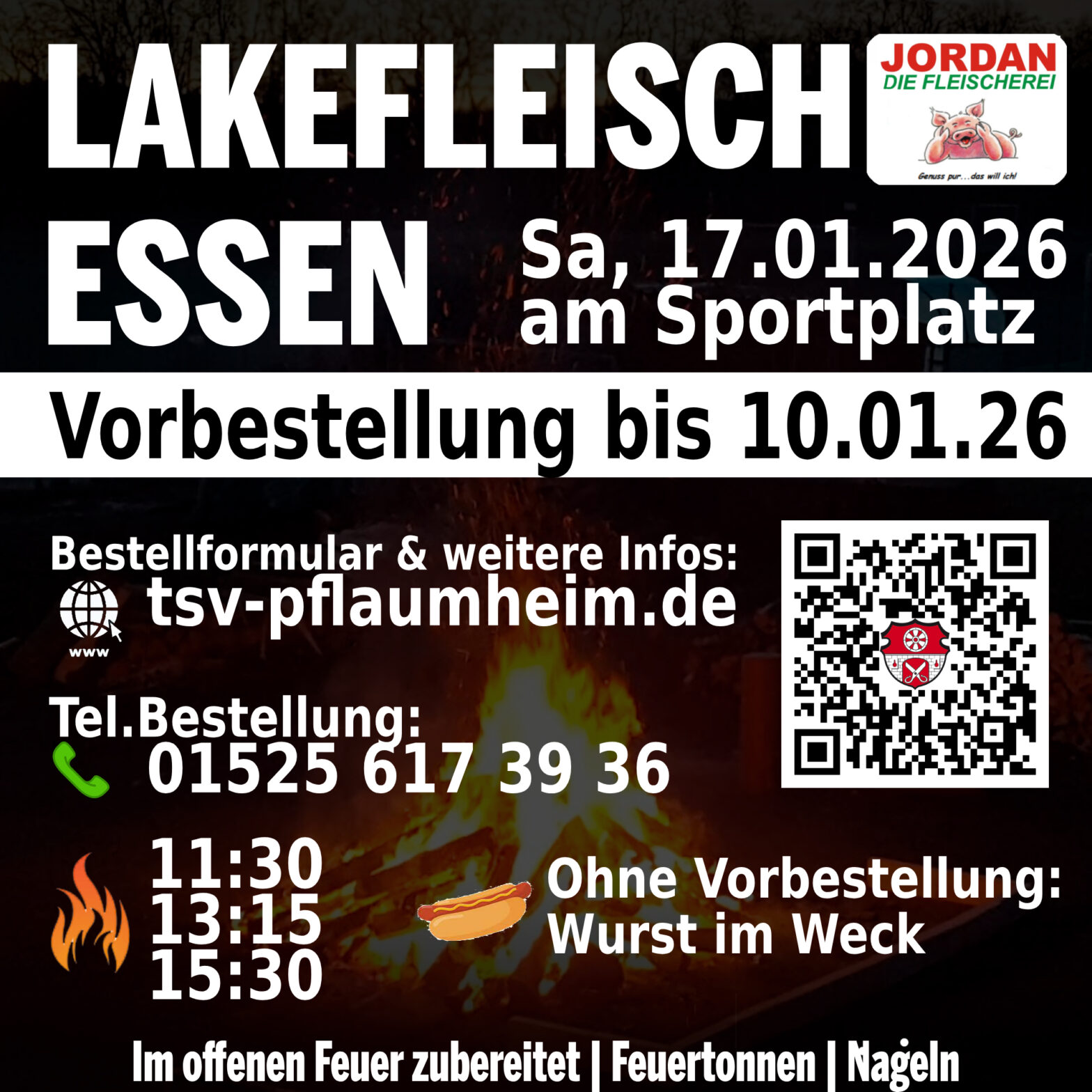 Auch 2026 findet wieder ein Lakefleischessen am Stadion an der Spessartstraße statt! Um genauer zu sein am 17.01.2026. Die Spezialität wird klassisch im Feuer zubereitet.